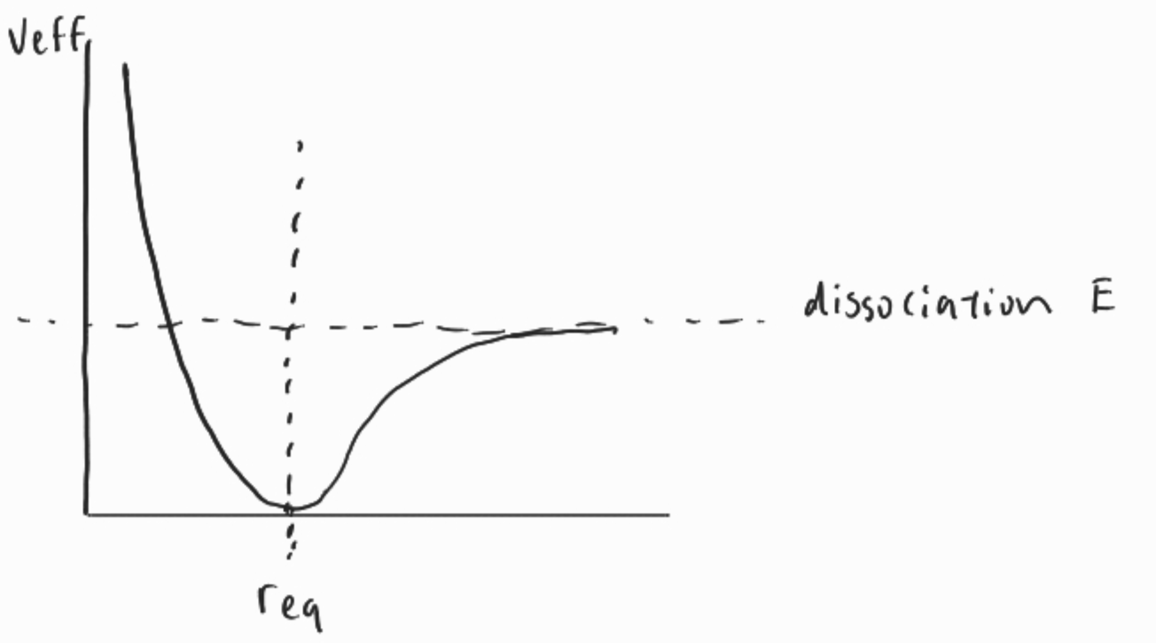 Morse potential curve describes the potential energy in a diatomic bond as a function of the radius. The basic version looks like the diagram below.
