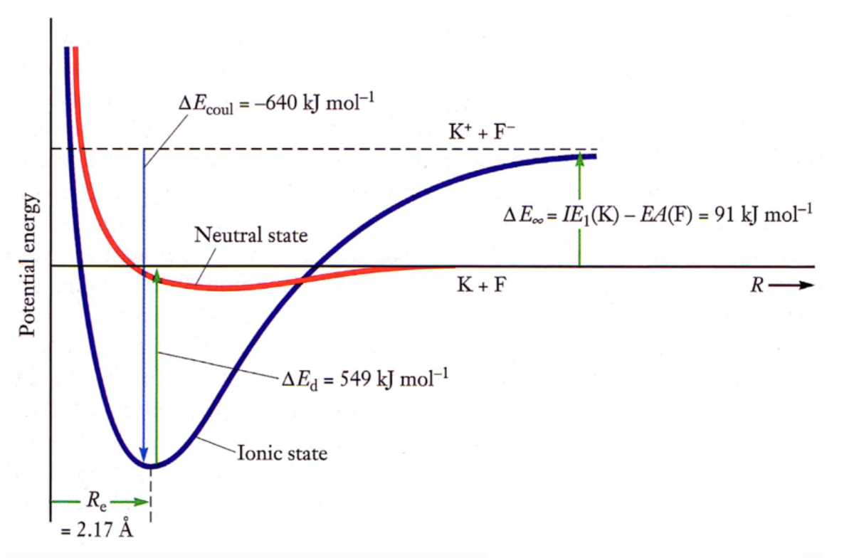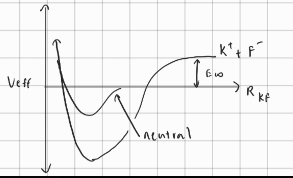 - potential energy is larger because of energy required to ionize both ions in the bond