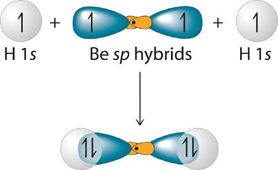 - ex1: BeH2 has linear geo, use hybridization to understand