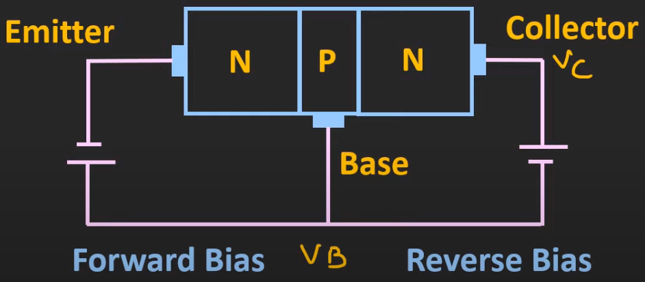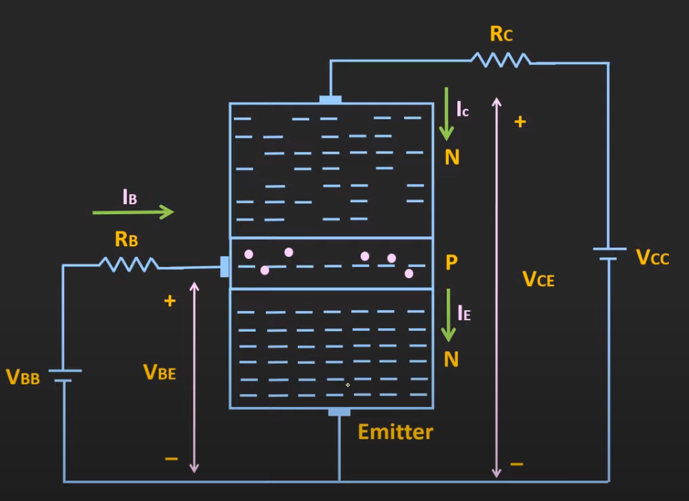 - pushes electrons from the emitter to the base