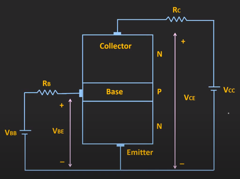 - is voltage at emitter, is voltage at the base, is the voltage at the collector