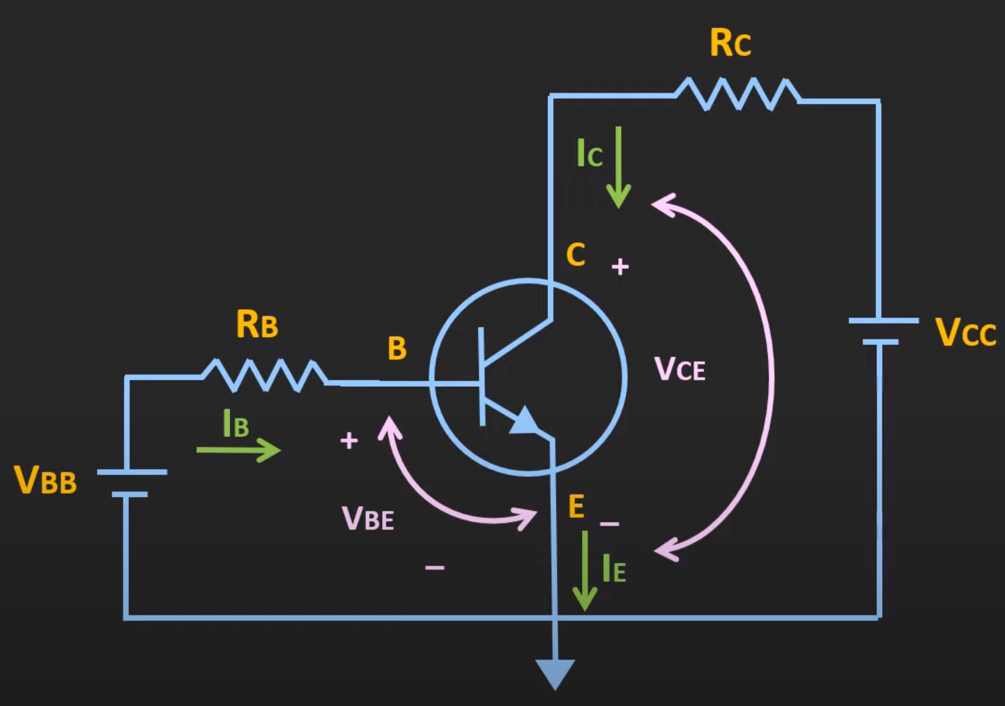 - biasing: running DC current through the 3 terminals of a transistor to set its region of operation and operating point or q-point