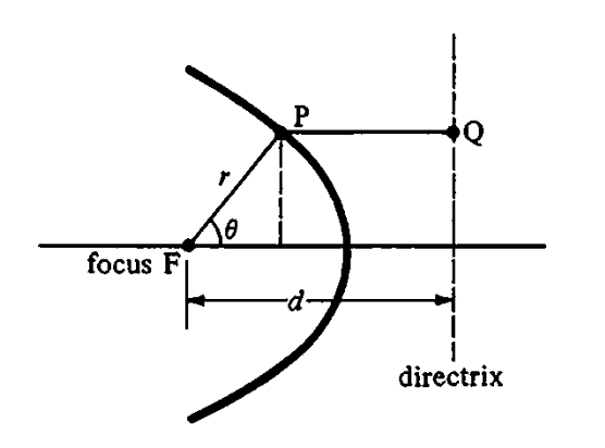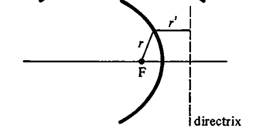 Conic sections can also be defined by the ratio, or eccentricity of the distance from a focus (fixed point) to a directrix (fixed line).